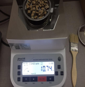 再次測(cè)試同樣撕取2克紙皮均勻平鋪在托盤(pán)中,5分鐘左右檢測(cè)結(jié)束結(jié)果顯示10.74%。