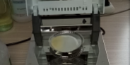 二、儀器本身有個(gè)自動(dòng)降溫過程,為求得數(shù)據(jù)的準(zhǔn)確性,故在進(jìn)行第二次測量的時(shí)候先等待幾分鐘,使儀器顯示溫度為40度以下時(shí)再進(jìn)行第二次測量,這次我們加大膠水樣品量為7.025克,將膠水均勻滴于鋁箔盤上,溫度照樣設(shè)定在120℃,按“START”鍵開始進(jìn)行測試,由于這次的膠水量比較多,所以儀器此次用了17分鐘43秒才測試結(jié)束,測試結(jié)果數(shù)據(jù)顯示31.17%(含水率),按“單位鍵”切換其顯示數(shù)據(jù),則屏幕顯示其固含量為68.83%。